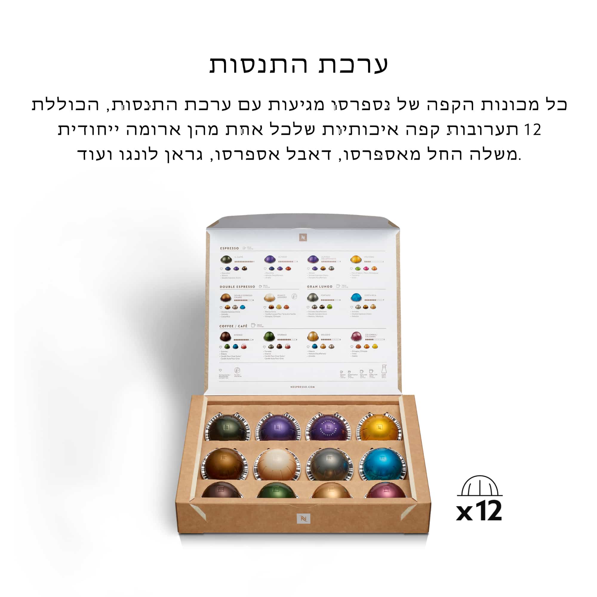 לכל מכונה מצורפת ערכת התנסות עם קפסולות VERTUO עם פרופילים ארומטיים ייחודיים