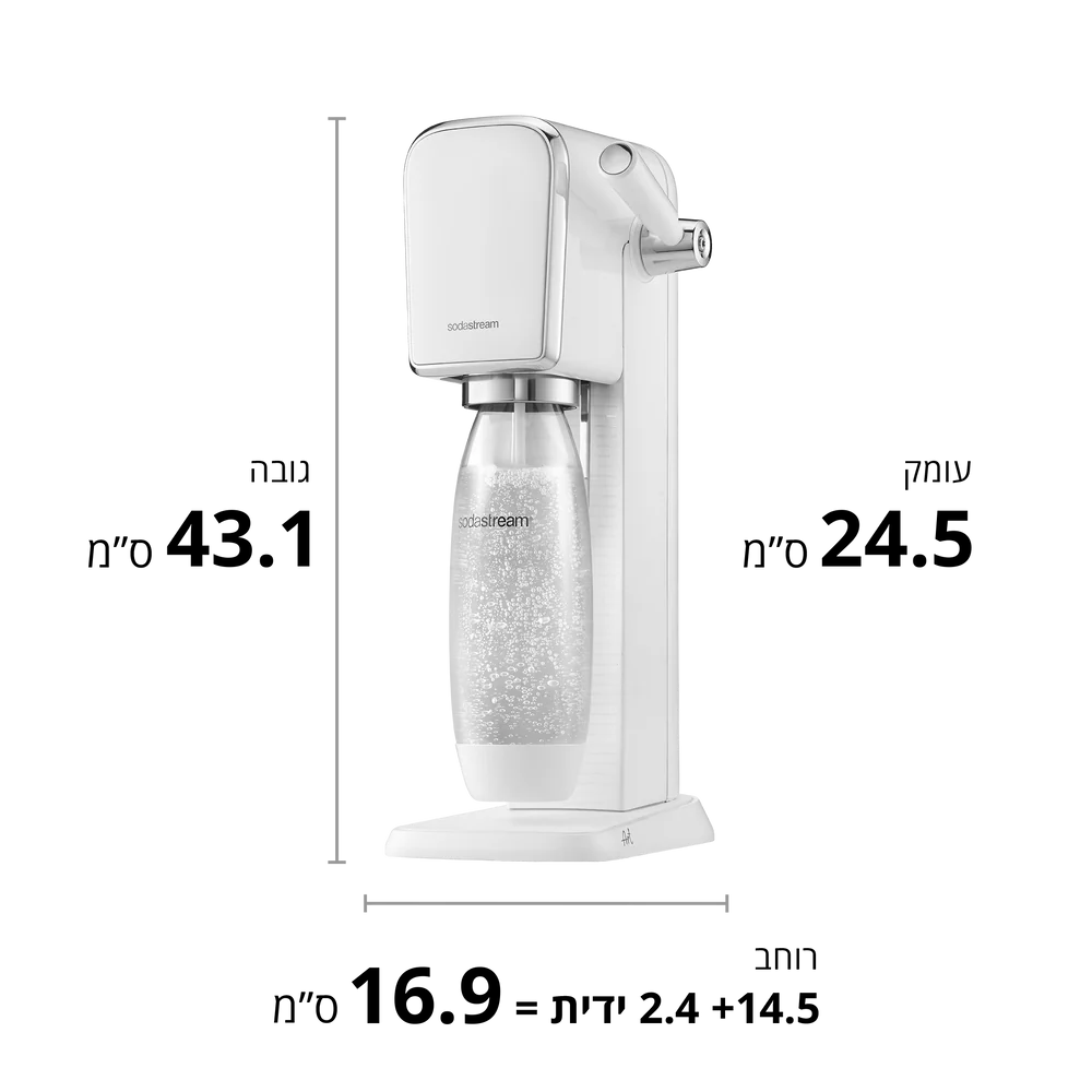 מכשיר סודה סטרים soda stream דגם ART צבע לבן – אחריות לשנה ע׳׳י היבואן הרשמי