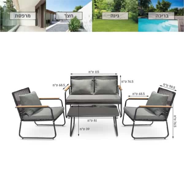 • צבעים: שלדת מתכת שחורה, ראטן שחור, כריות בגוון אפור