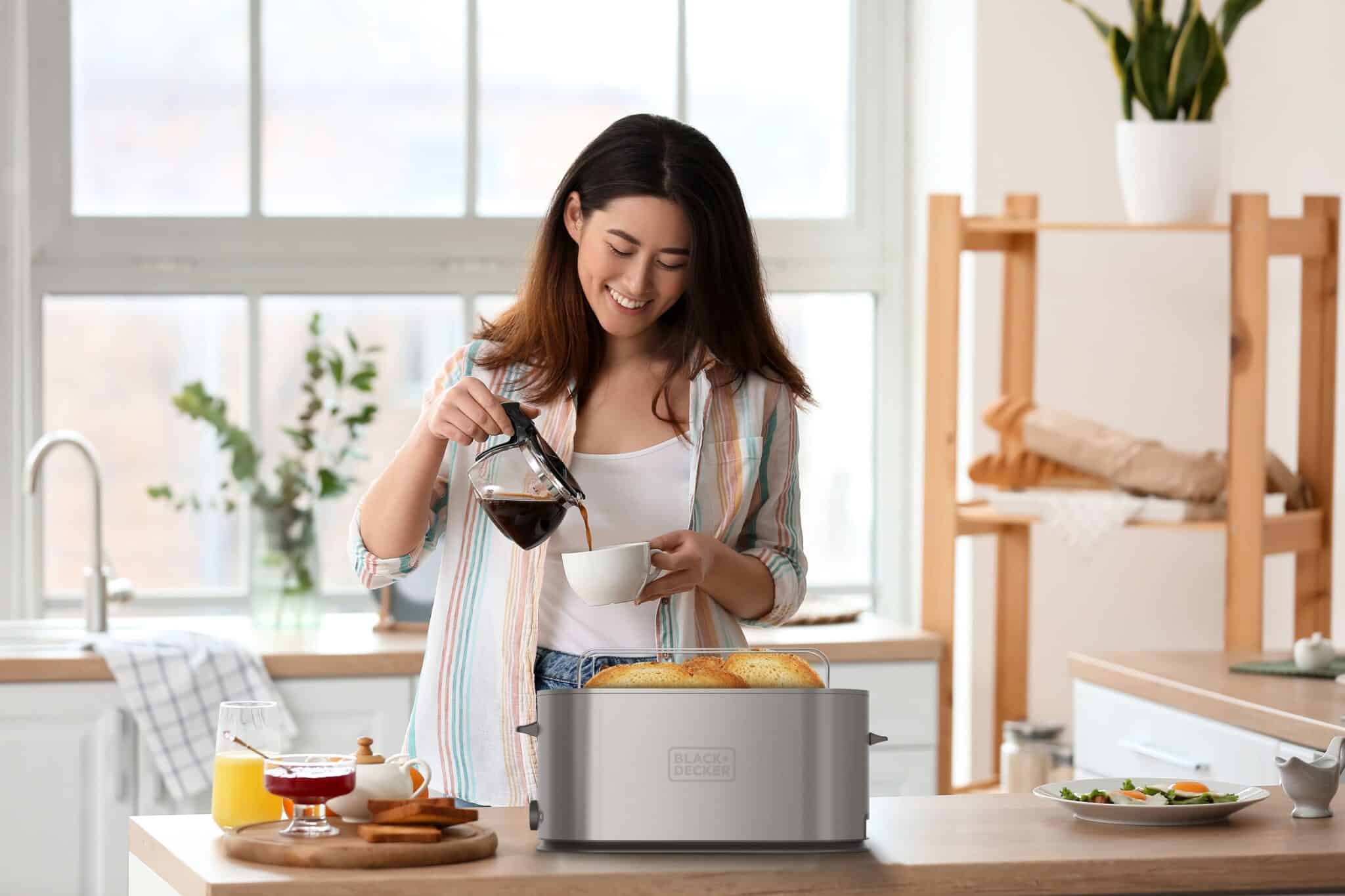 • טוסטר חשמלי מבית BLACK+DECKER עם מנוע עוצמתי 1500W להכנה מהירה ואחידה של טוסטים ומאפים