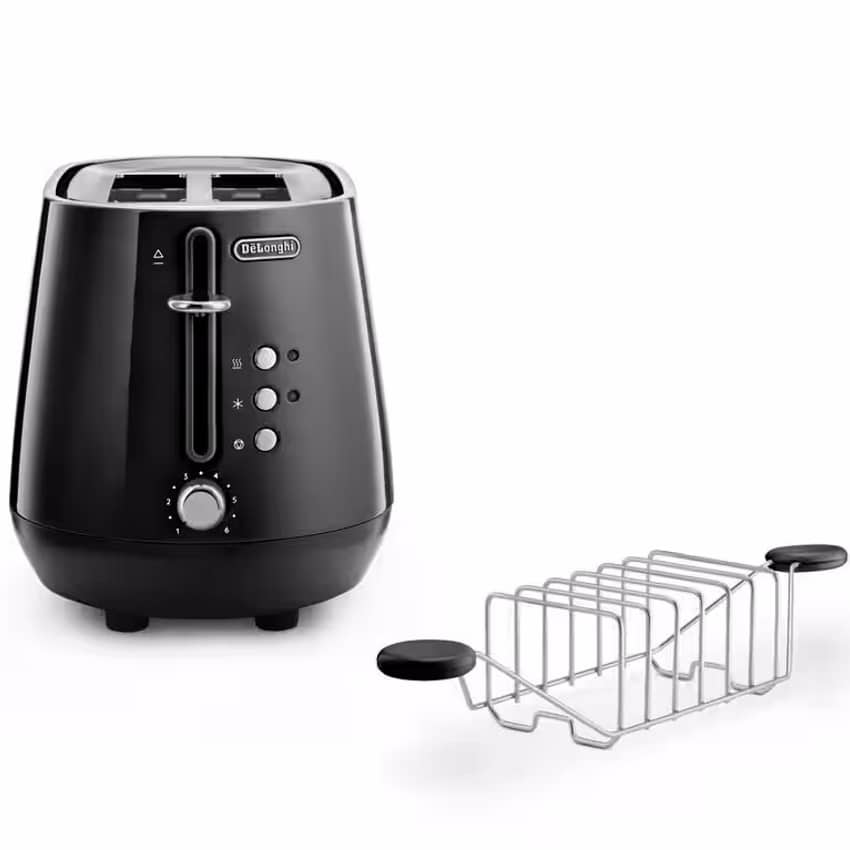 מצנם 2 פרוסות DeLonghi Eclettica CTY2103.BK בצבע שחור – שליטה מדויקת ברמת ההשחמה, פונקציות מתקדמות ועיצוב אלגנטי למטבח מודרני.