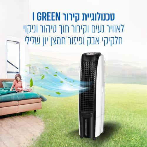 • טכנולוגיית קירור I GREENמערכת פילטרים ייחודית המבטיחה אוויר נעים וקירור תוך טיהור וניקוי חלקיקי אבק ופיזור חמצן יון שלילי