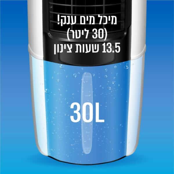 • מיכל מים 30 ליטר:מיכל גדול עם מדיד שקוף בחזית המוצר הנותן אינדקציה למצב המים במיכל בכל עת