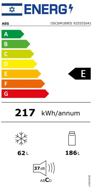מקרר אינטגרלי מלא 60 ס”מ ללא מקפיא AEG א.א.ג דגם – OSC6M189ES