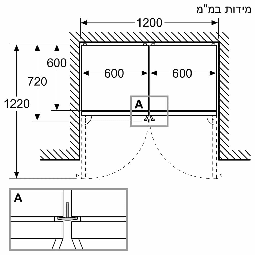 רוחב: 60 ס”מ (120 ס”מ בהצמדת 2 יח’)