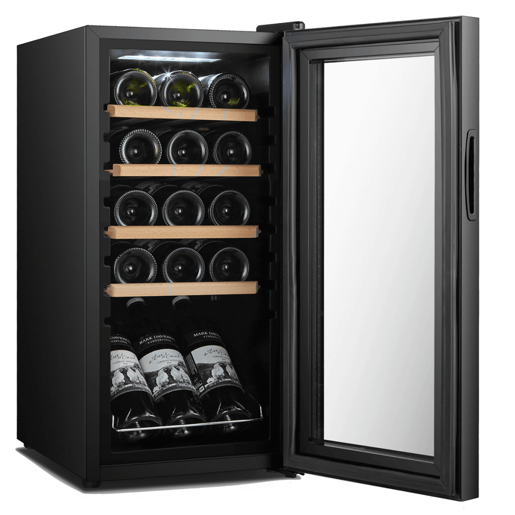 מקרר יין עם מדפי נירוסטה המיועד לאחסון 15 בקבוקים של יין