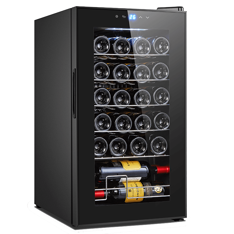 למקרר היין תאורה פנימית ותצוגה דיגיטאלית לקביעת טמפרטורה