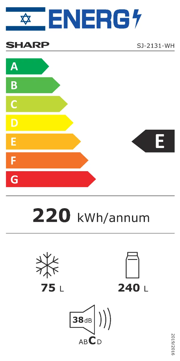 מקרר מקפיא עליון שארפ SHARP SJ2131 לבן