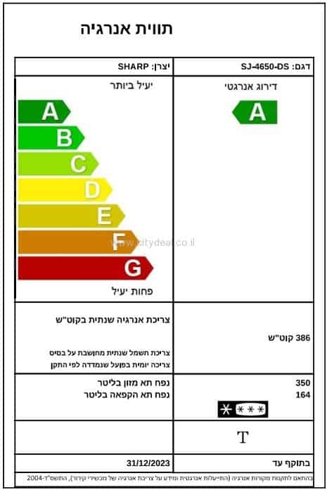 - 354 ל׳ נפח אחסון תא קירור (נטו)