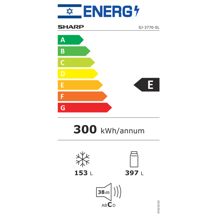 טכנולוגית קירור היברידית בקרת טמפרטורה אלקטרונית Nano Deodorizer טכנולוגית SHARP גלאט משמרת השבת טכנולוגית Plasmacluster דירוג אנרגטי E