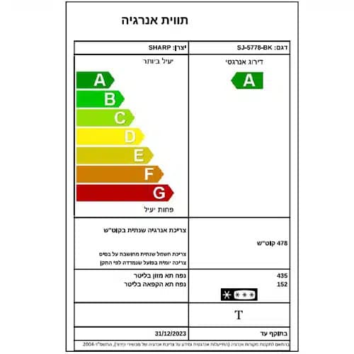 מקרר 2 דלתות 587 ליטר SJ-5778 שארפ