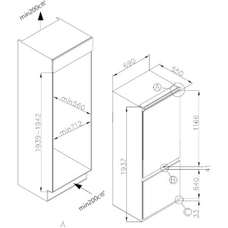 מקרר בנוי בארון 70 ס”מ אינטגרלי