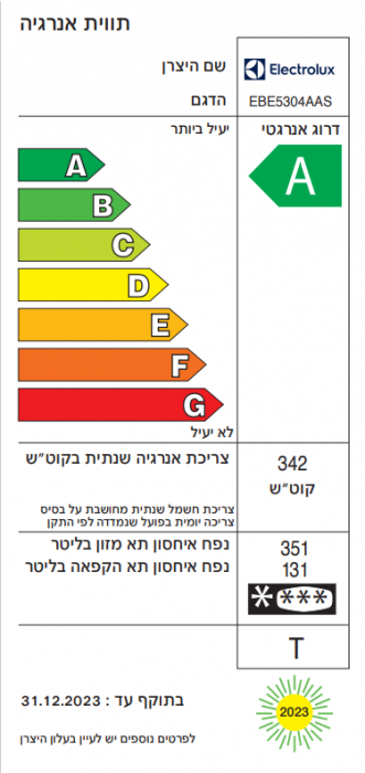 מקרר מקפיא תחתון אלקטרולוקס Electrolux דגם EBE5304AAS