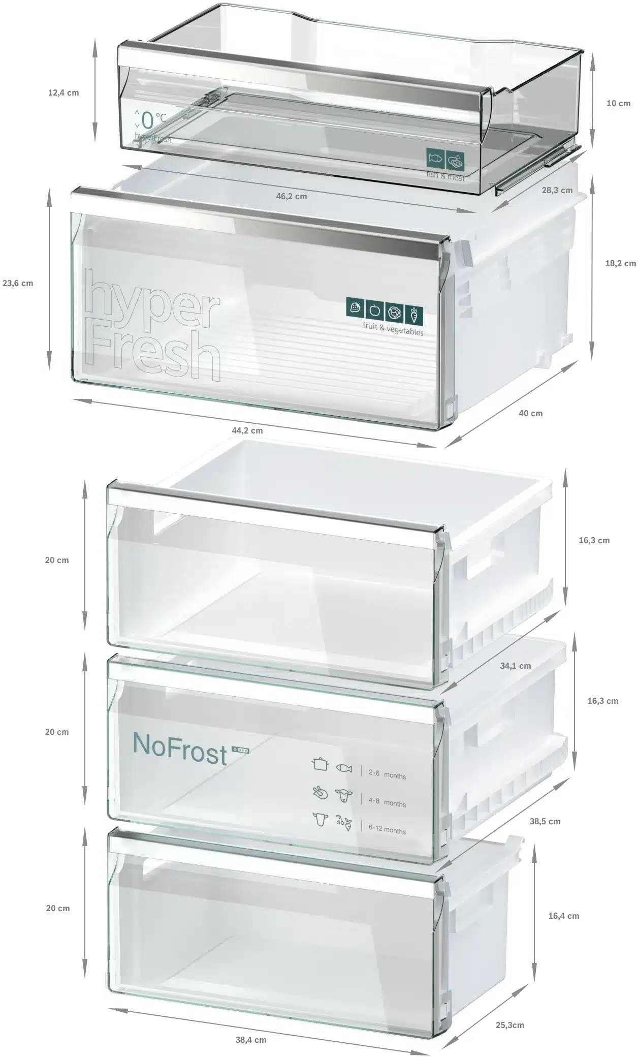 תכונות נוספות מגירות נשלפות, תא ירקות מותאם, תאורת LED פנימית
