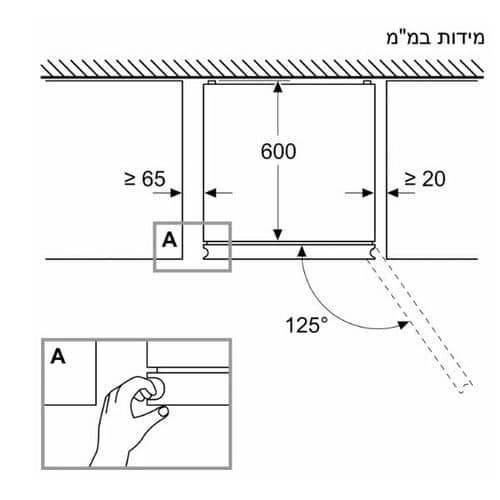 עומק 66.5 ס”מ (60 ס”מ עומק גוף)