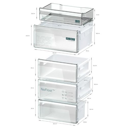 עומק גוף המקרר 60 ס”מ, אידיאלי להתקנה בקו ארונות המטבח פונקציית Super Freeze להקפאה מהירה נפח נטו 363 ליטר דירוג אנרגיה C תקן חדש No-Frost הפשרה אוטומטית! עיצוב ללא ידיות למראה חלק ואסתטי