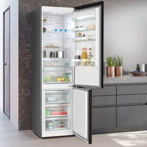 מקרר מקפיא תחתון ברוחב 60ס”מ בגימור נירוסטה שחורה, ניתן להצמיד 2 יח’ לקבלת מקרר 4 דלתות