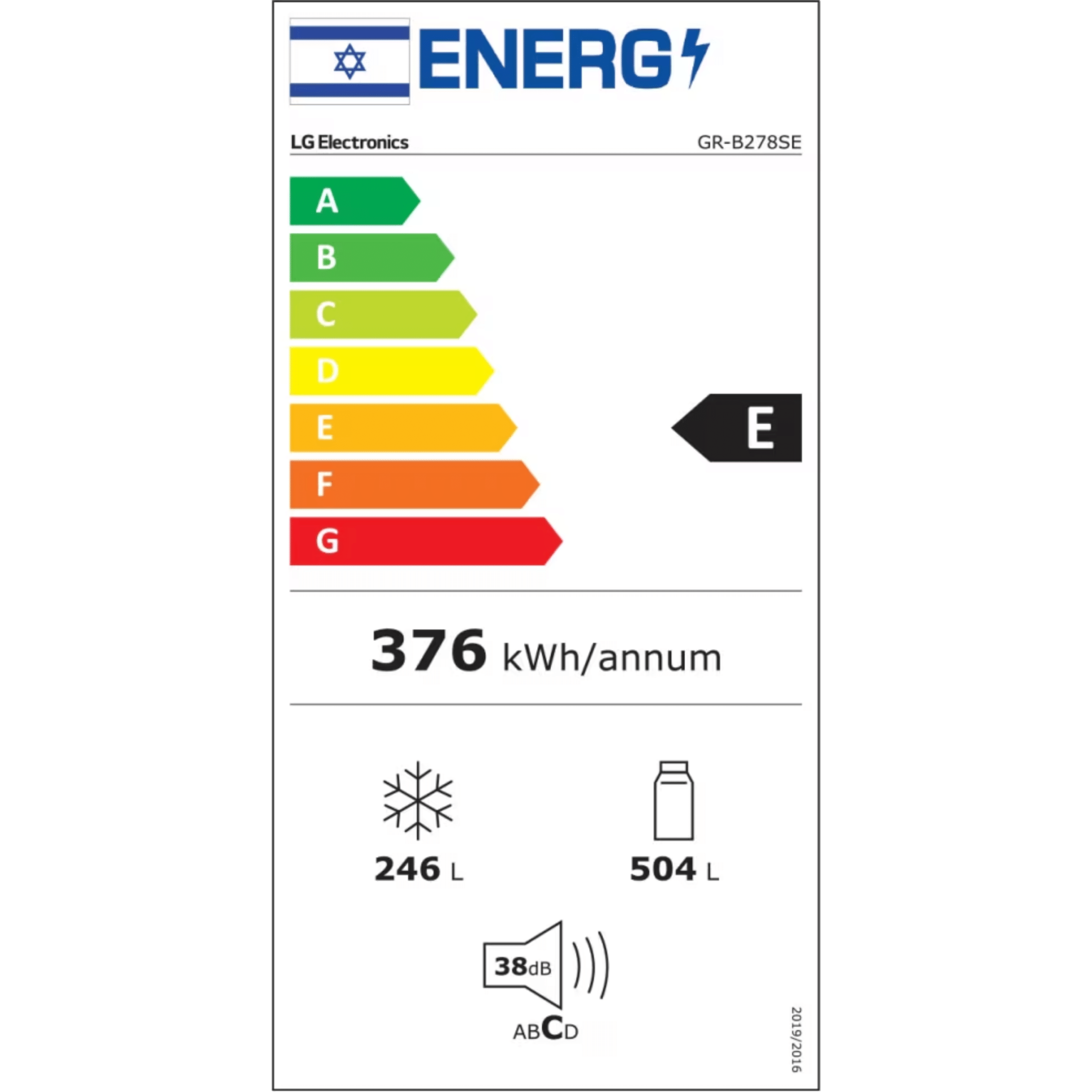 מקרר 3 דלתות LG אל ג’י 750 ליטר GR-B278SE עם התקן שבת נירוסטה מושחרת