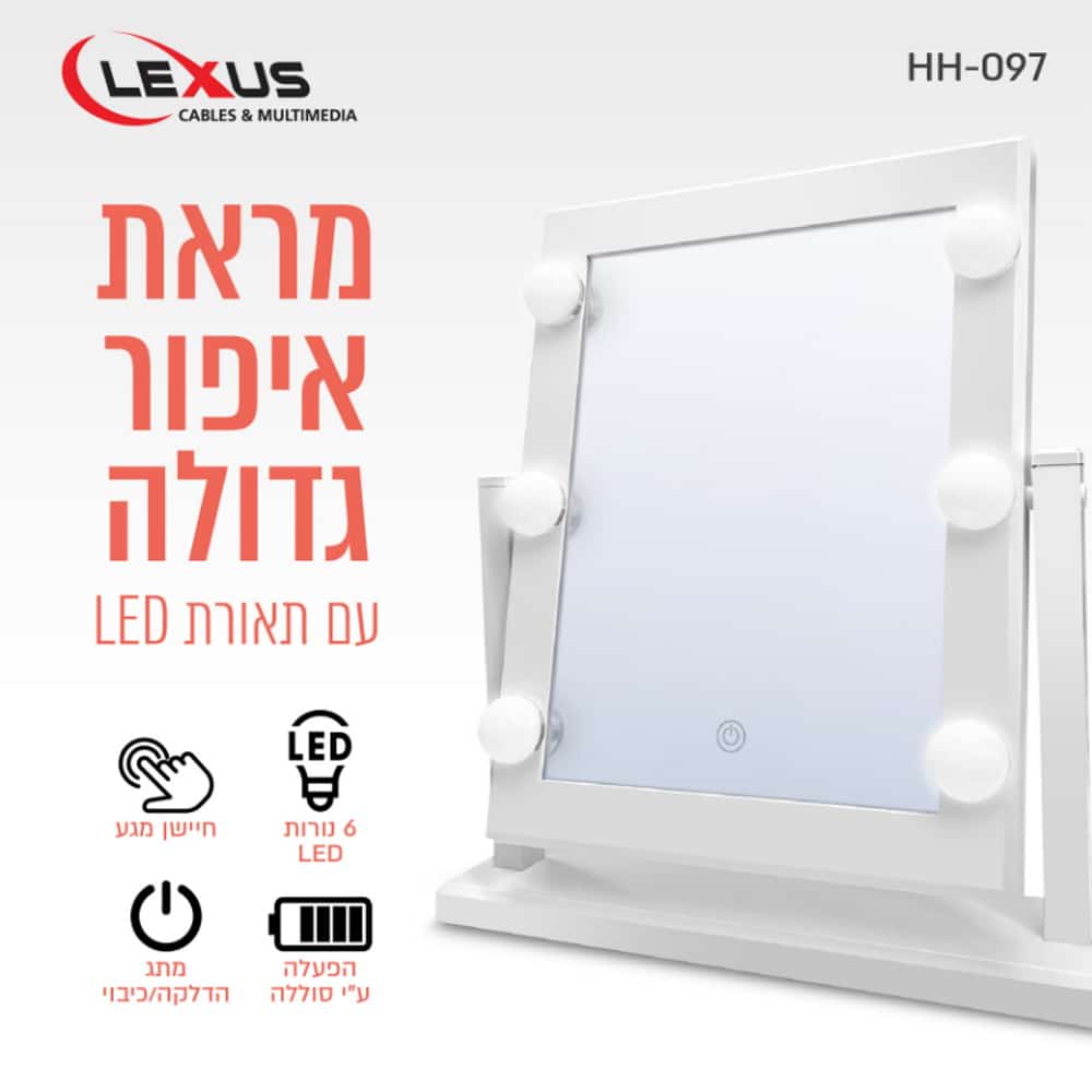 מראת איפור ניידת גדולה עם תאורת Lexus LED לקסוס דגם HH-097