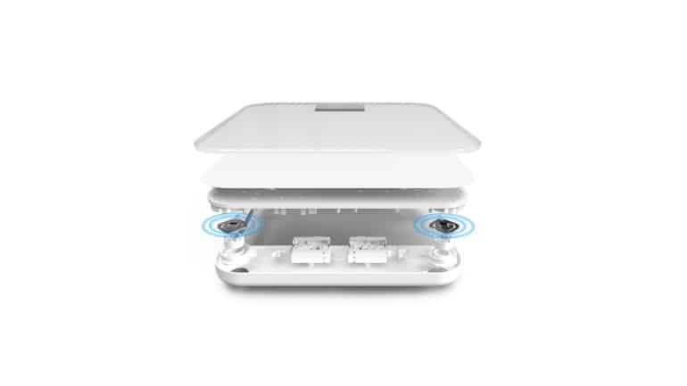 • עיצוב דק (גובה 34 מ”מ) עם משטח זכוכית לבן