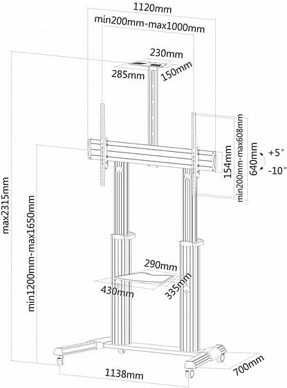 עגלת נשיאה למסכים עד 100 אינטש בעיצוב מיוחד
