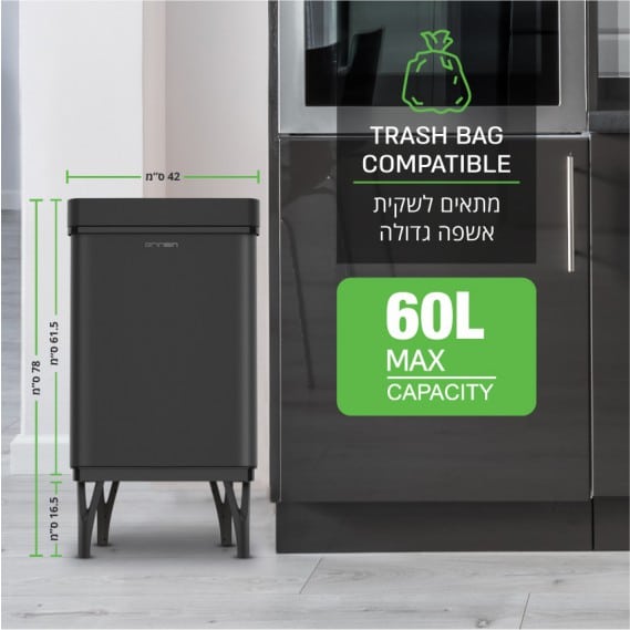 פח על רגליים עם חיישן אוטומטי בנפח 60 ליטר מבית GRINBIN גרין בין דגם COLORADO