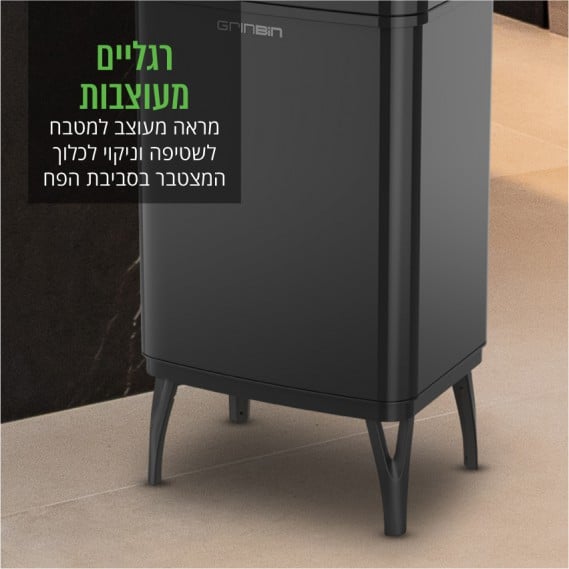 עיצוב רגליים – נותן מראה של רהיט למטבח ומאפשר שטיפה וניקוי לכלוך המצטבר בסביבת הפח בקלות