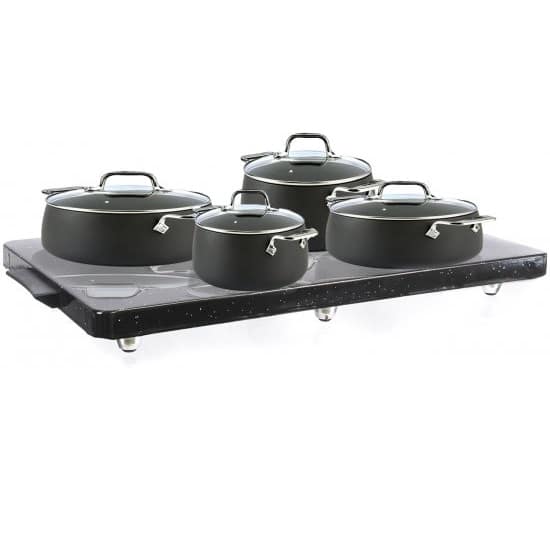 הפלטה מיועדת למספר סירים וכוללת מערכת חימום רציפה השומרת על רמת חום אחידה בכל שטח הפלטה.