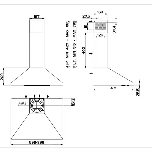קולט אדים צמוד קיר “אף” 90 ס”מ FABER פבר דגם VEIL