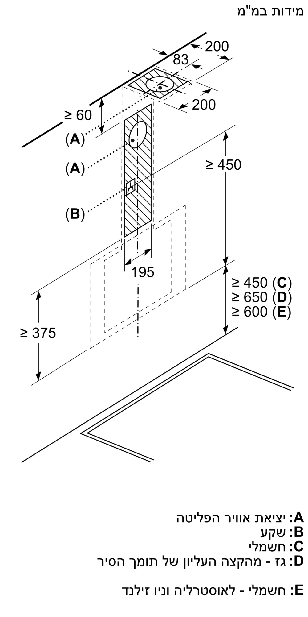 מרחק מיני’ מעל לכיריים גז