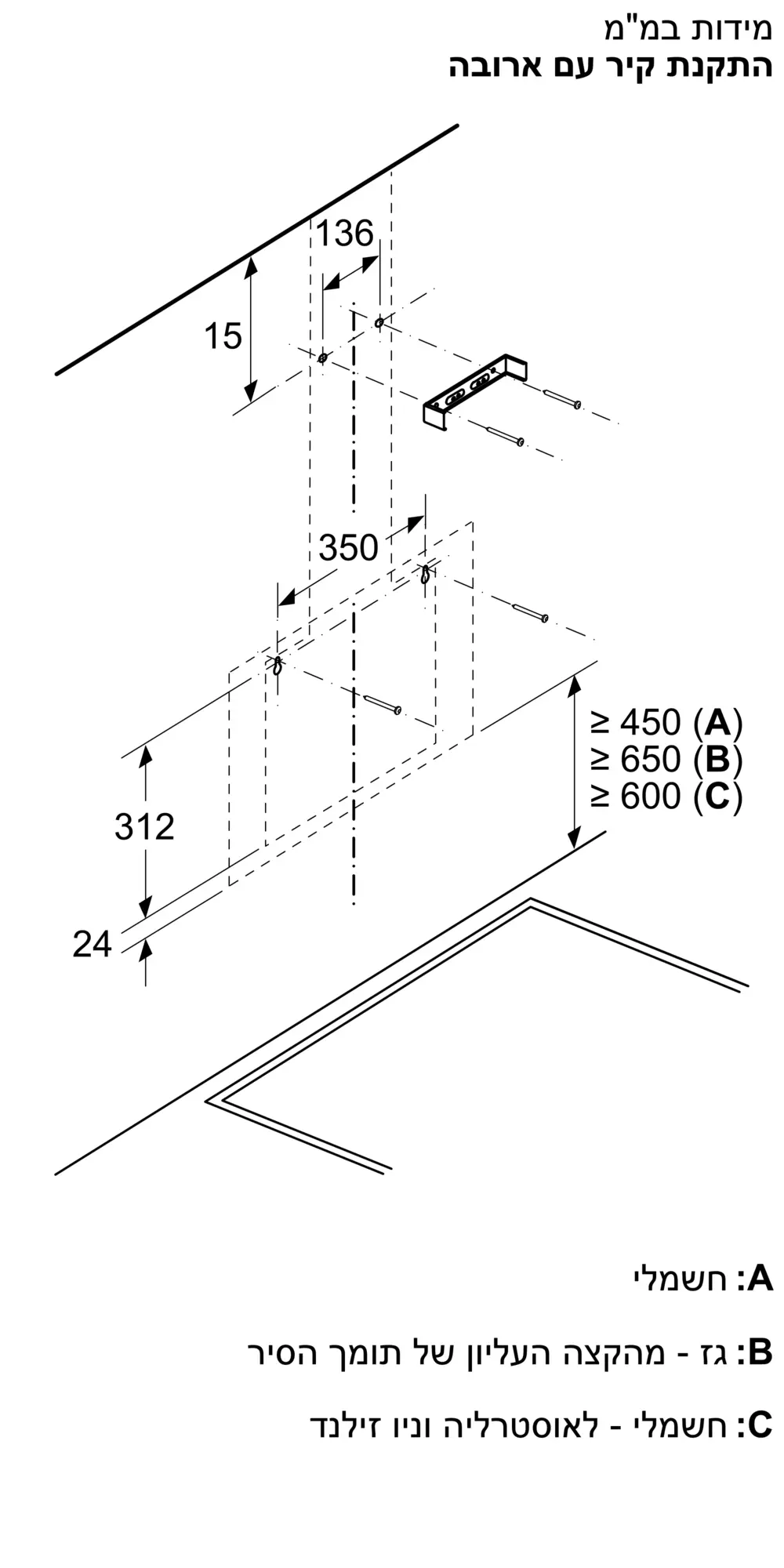 מרחק מיני’ מעל לכיריים חשמליות
