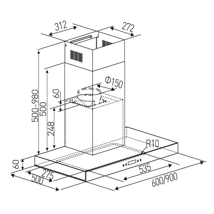 קולט אדים זכוכית LY Vent דגם LV-F-515 רוחב 60 ס”מ לבן