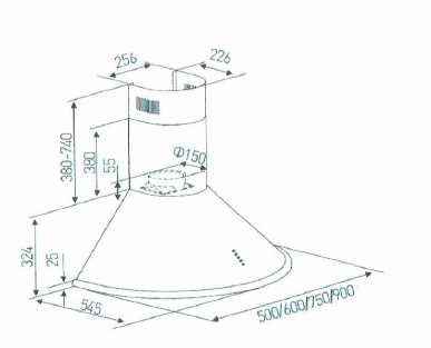 קולט אדים ארובה LV-R-588 בעל עוצמת שאיבה מקסימלית של 890 מק”ש | שיטת טיהור אווירה של סירקולציה פנימית ע”י פילטר פחם או הוצאת אויר חיצונית | הפעלה באמצעות לחצנים
