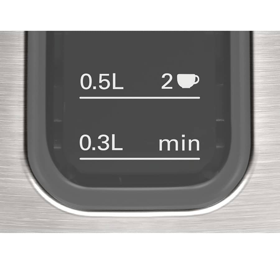 מדיד מים וכוסות בצד למראה נקי, קל לקריאה כך שתרתיחו רק את הכמות הנחוצה, לחיסכון באנרגיה וזמן