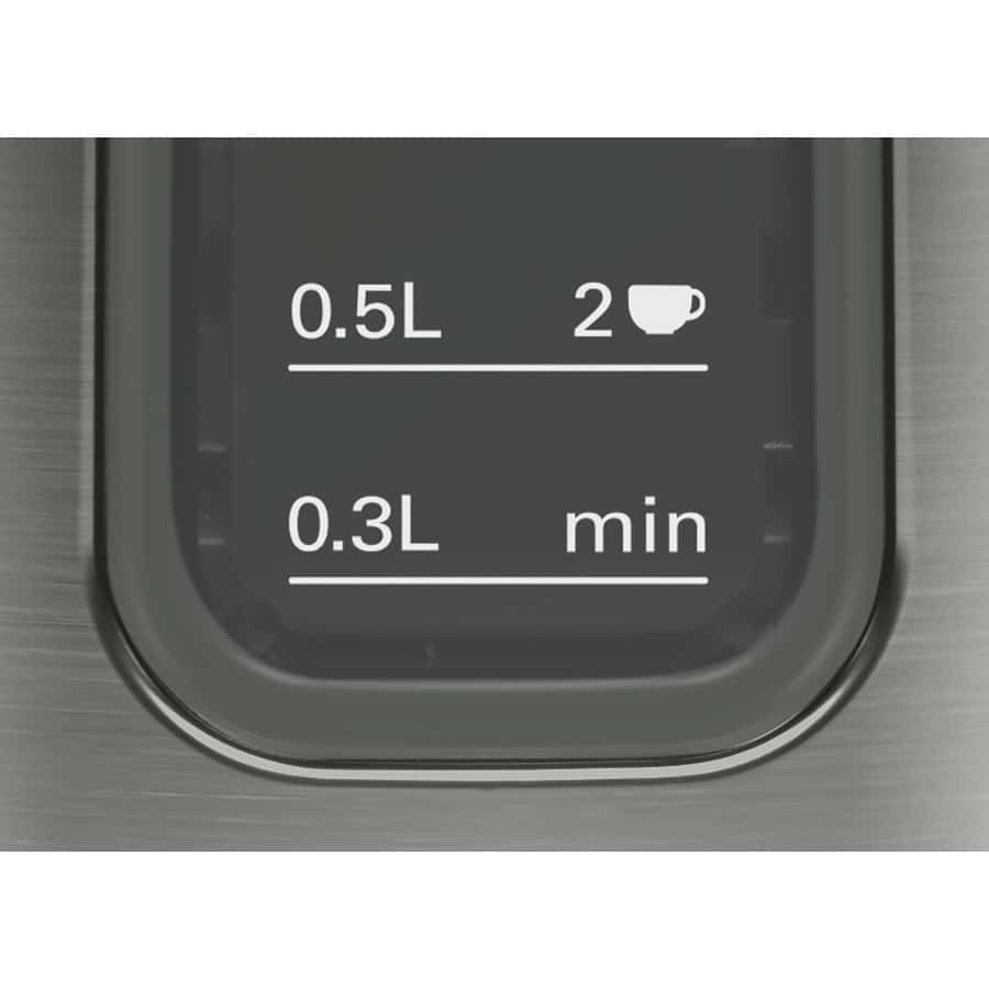 מדיד מים וכוסות בצד למראה נקי, קל לקריאה כך שתרתיחו רק את הכמות הנחוצה, לחיסכון באנרגיה וזמן