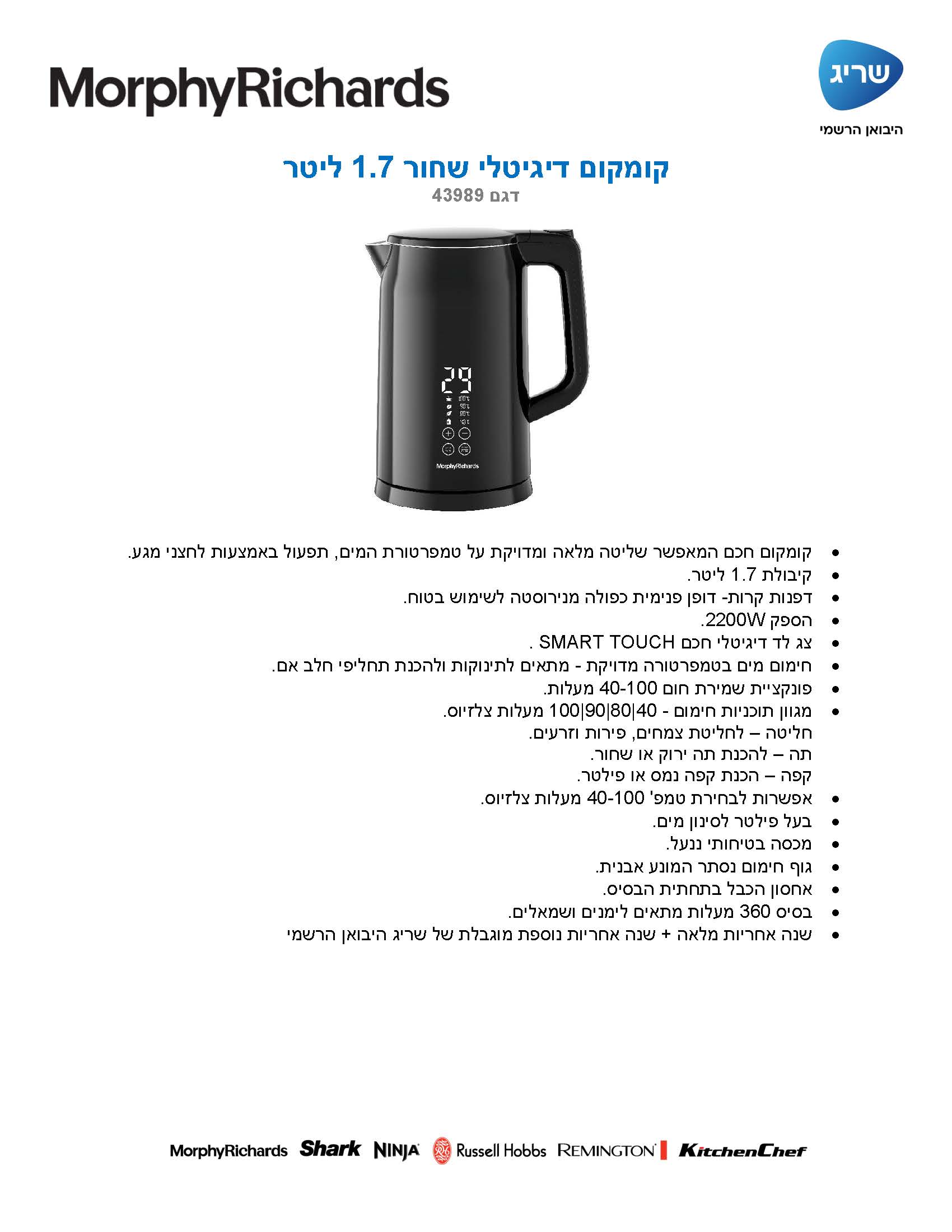 קומקום נירוסטה שחור 1.7 ליטר MORPHY RICHARDS מורפי ריצ’ארדס דגם – 43989