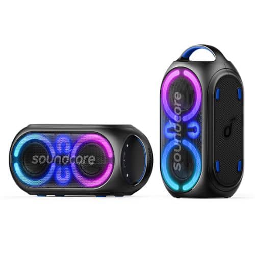 רמקול נייד Soundcore PartyCast 2.0 Rave Party 2 עם צליל סטריאו של W120, עמידות למים IPX4, עד 16 שעות השמעה, כניסת מיקרופון, אקולייזר הניתן להתאמה אישית והגברת הבס והטרבל.