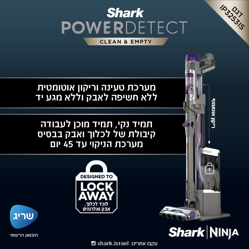 שואב אבק אלחוטי עם מערכת ריקון וטעינה אוטומטית Power Detect שארק SHARK דגם – IP3253IS