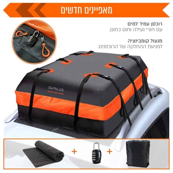 תיק גג לרכב מוגן מים 600 ליטר סיריוס SIRIUS דגם ROOFTOP-600