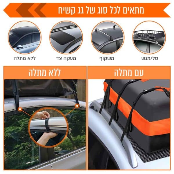 • תאימות אוניברסלית – מתאים לרכבים קטנים או גדולים עם או בלי גגון, רכבי שטח , SUV, מסחריות ועוד