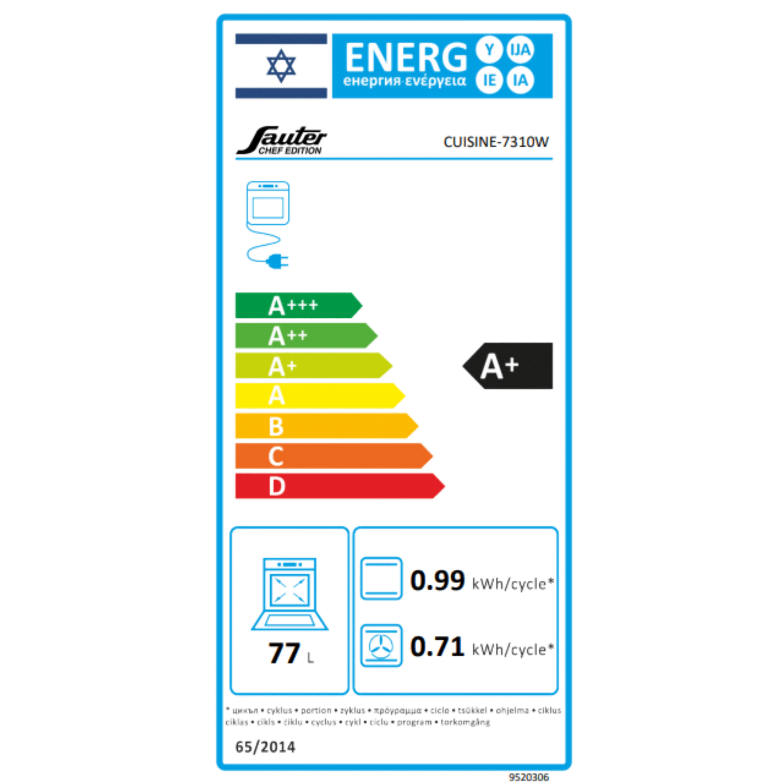 תנור אפיה בנוי פירוליטי sauter סאוטר דגם Cuisine 7310W לבן