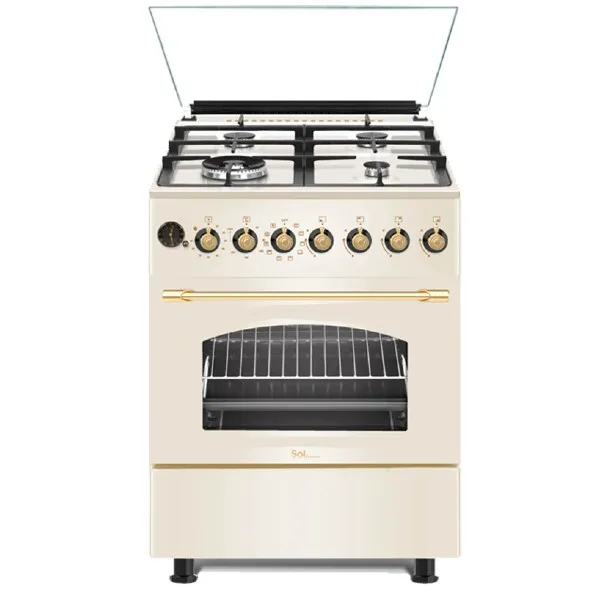 תנור אפייה משולב כיריים 4 גז SOL סול RCR66MFT עיצוב כפרי קרם