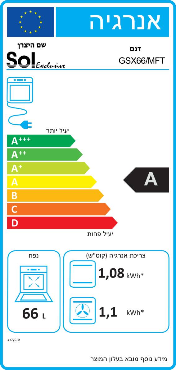 נפח התנור 66 ליטר