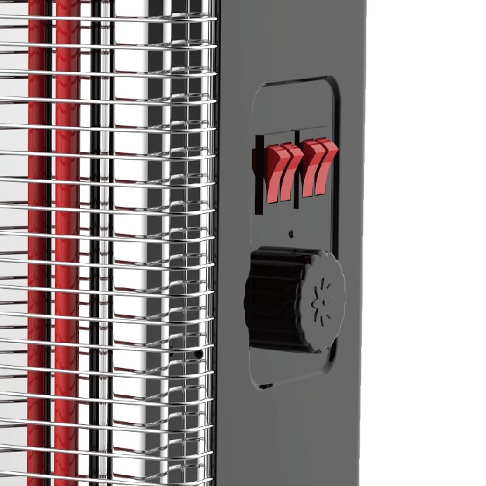 שלושה גופי חימום בחזית 3x700W ואחד עליון 1x300W