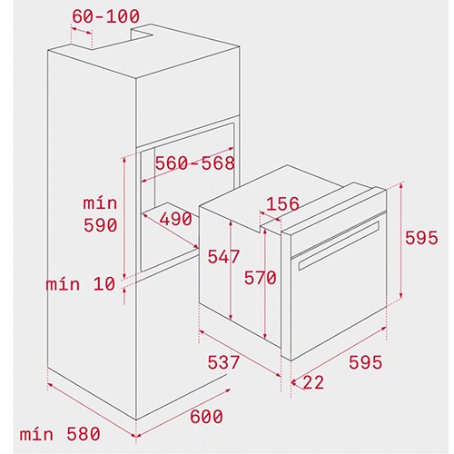 מידות חיצוניות: רוחב 595 גובה 595 עומק 562 .